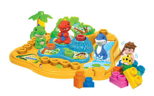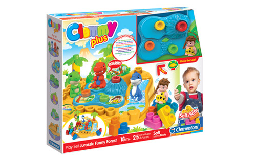 In addition to the soft Clemmy cubes, the set also includes dinosaurs for children to play with.