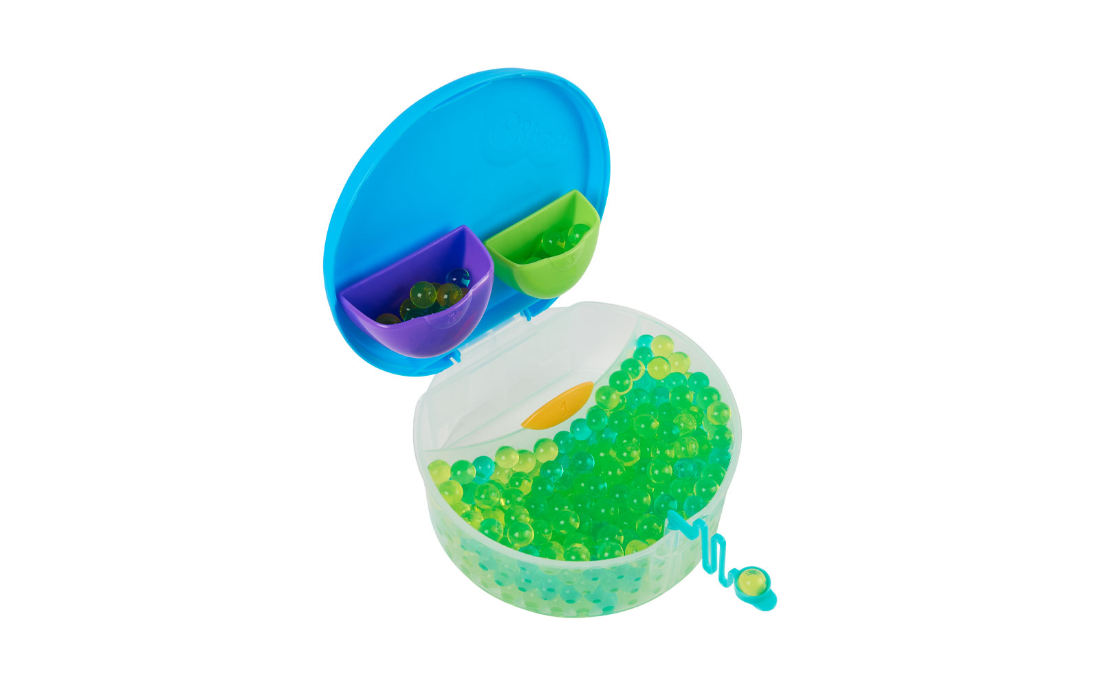 The plastic box contains 2 different compartments where children can put their Orbeez water balls.